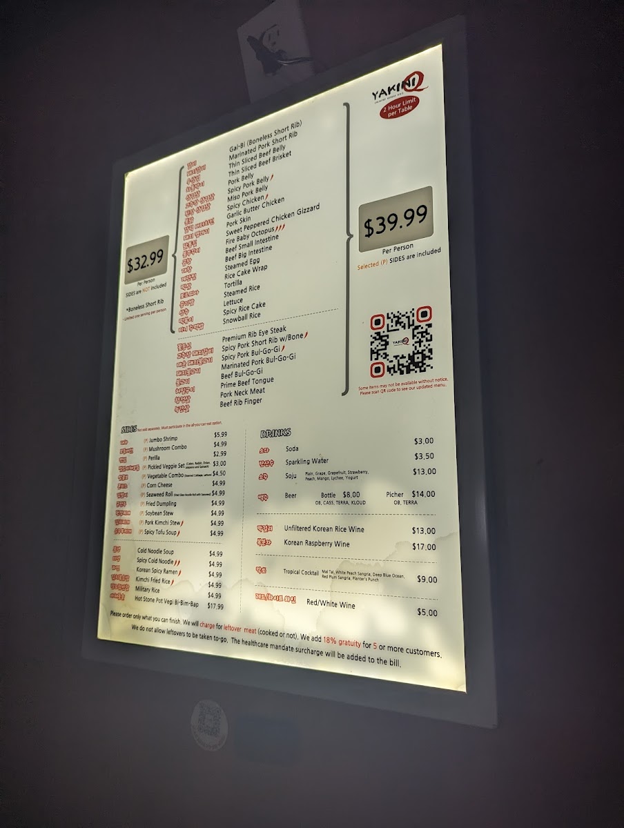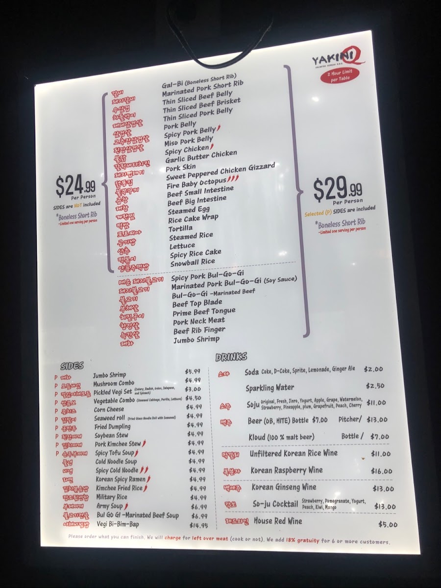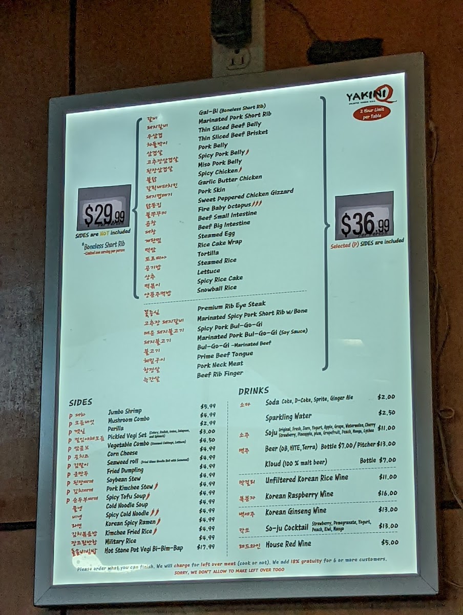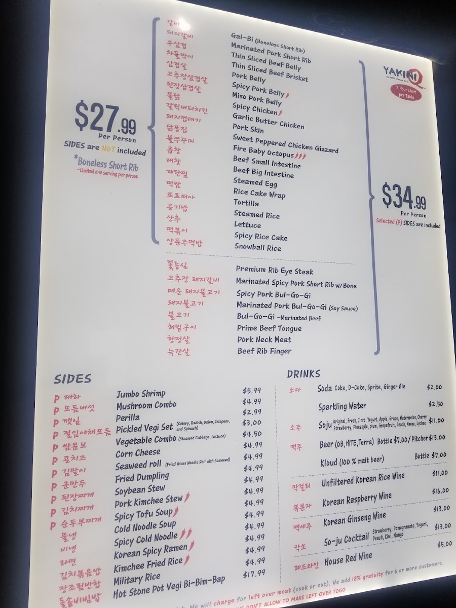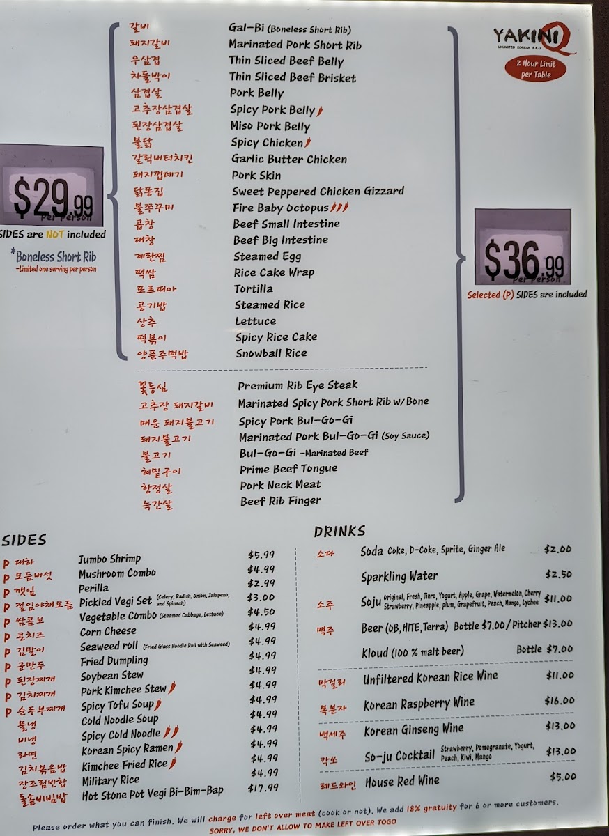 YakiniQ Korean BBQ Menu (Updated October 2025)